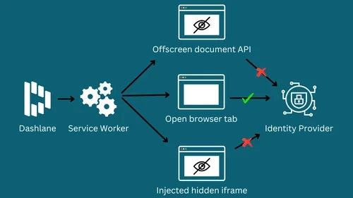 - Making all the required network requests to the IdP from our extension background (Service Worker). This didn’t solve our challenge either, since it would’ve required us to know our users' SSO credentials and provide them in the network requests.