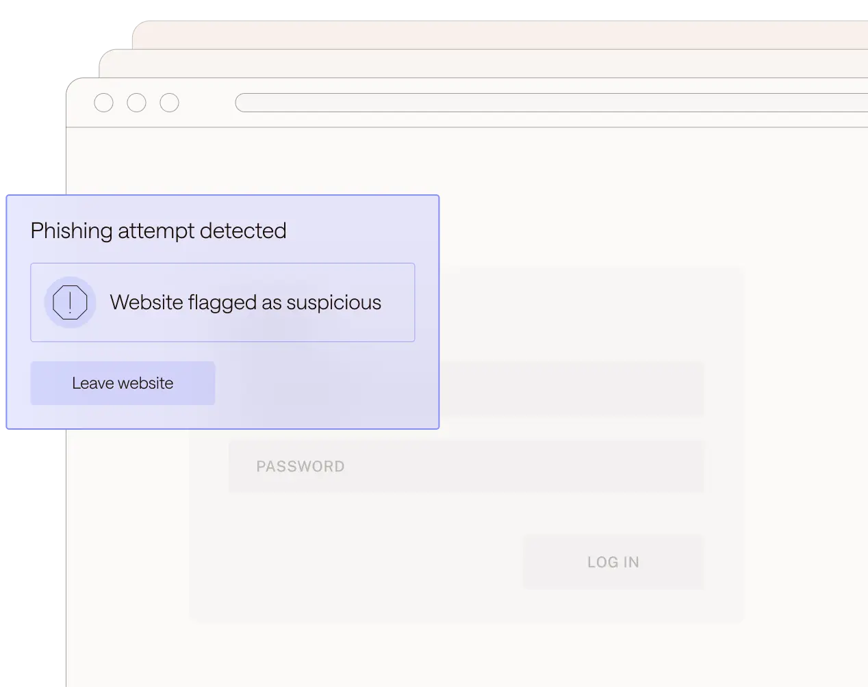 Too rushed or tired to spot red flags on fake sites? No worries. Scam Protection automatically warns you about suspicious sites—no extra thinking required.