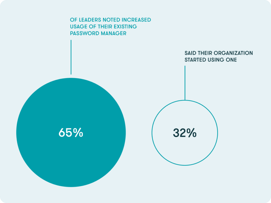 - 65% of leaders and 25% of employees reported increased usage in their existing password manager