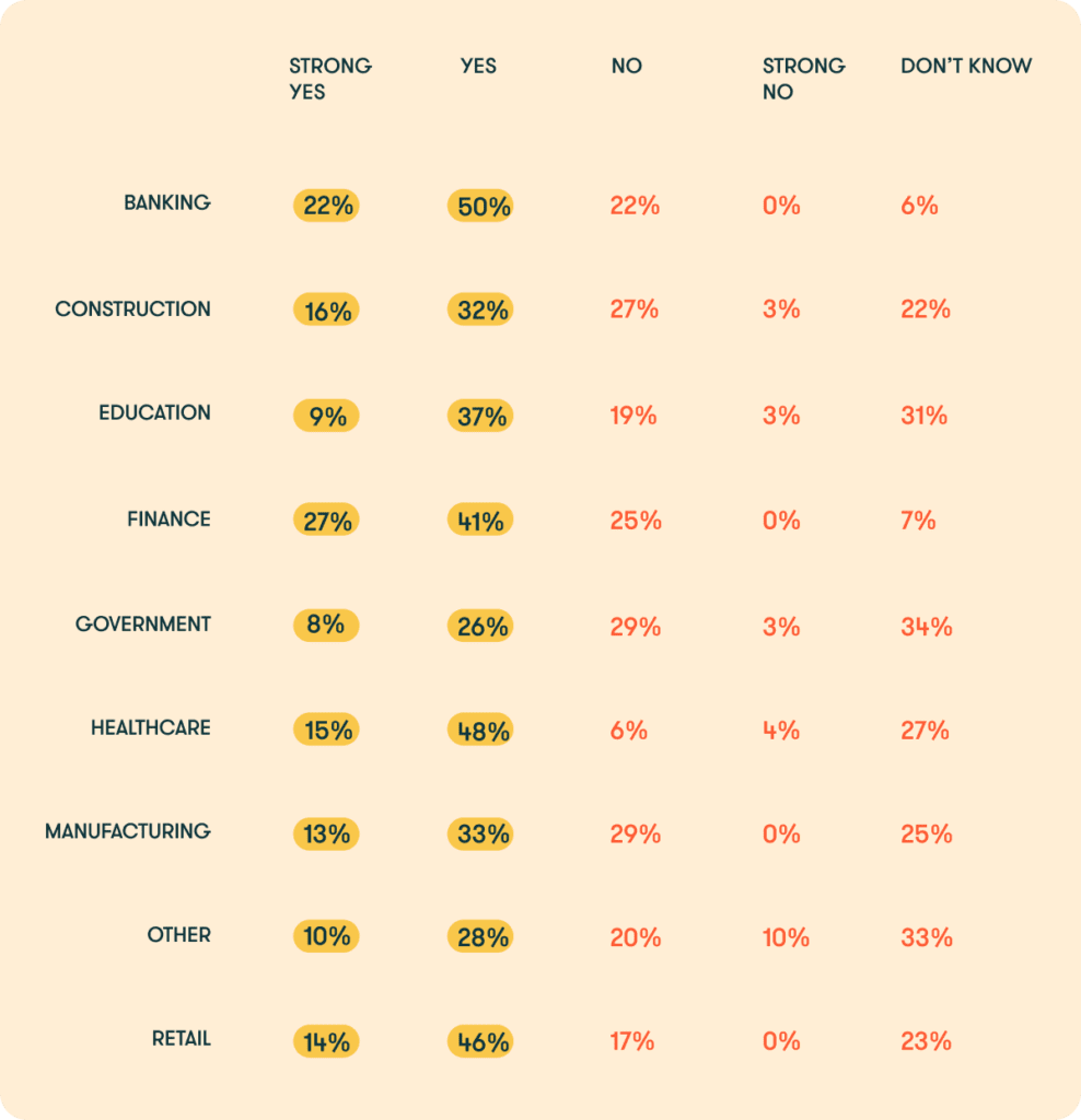 52% of employees overall believe their organizations need a password management solution. Opinions varied by industry, though.