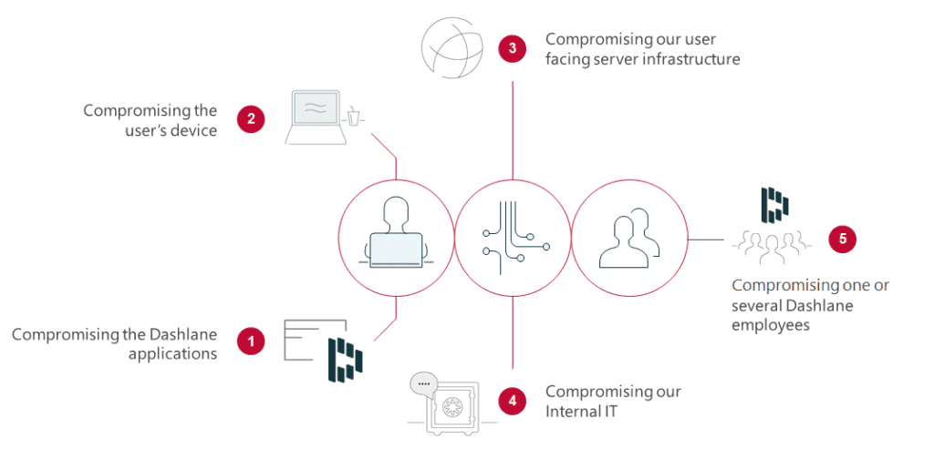 There are 5 main attack vectors against Dashlane.