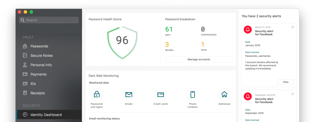 A few months later, Dashlane surprised me with my first alert. My identity had been compromised by a Facebook data breach. Dashlane showed me exactly which accounts had been breached, which passwords to reset, and gave me one button to do it. They weren’t manipulating me; they were looking out for me. I was sold.