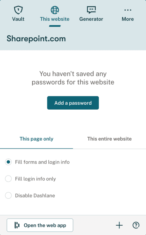 On some websites, you might want Dashlane to only fill your password and not personal info, or even to not have Dashlane autofill at all.