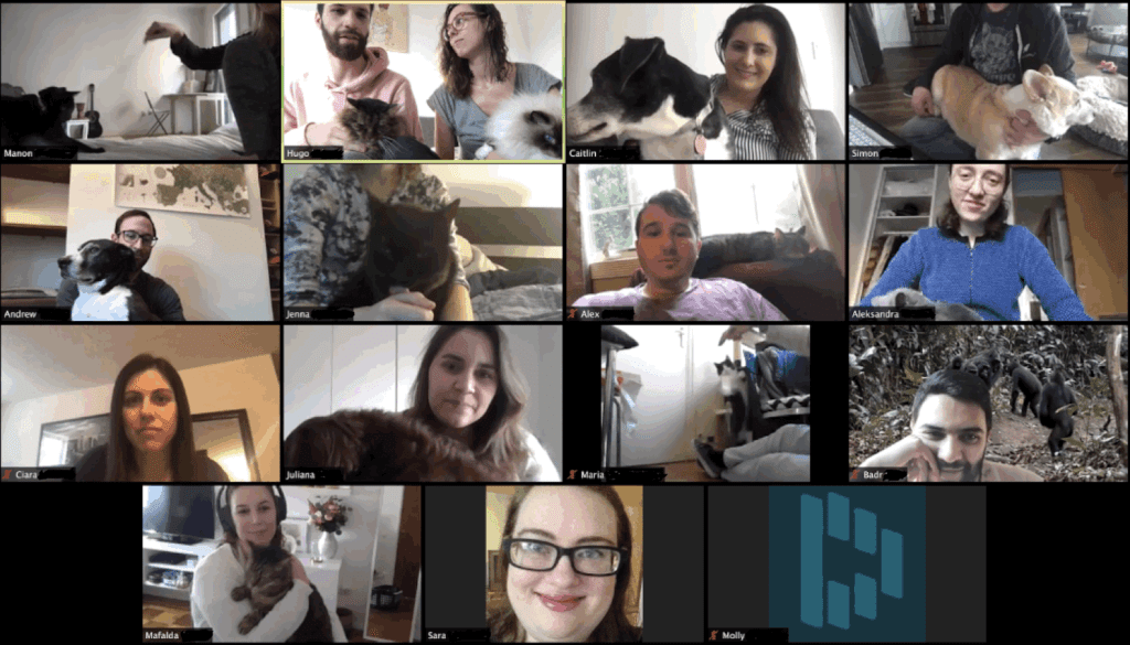 - Continue to follow all your usual ceremonies: At Dashlane, we follow a pretty standard agile process. Our daily standups allow us all to come together daily and make sure we are all prepared to focus on the top priorities of the day. Our bi-weekly sprint retrospectives and sprint plannings allow us to iterate on our processes and plan for the upcoming sprint. To make sure nobody misses out on these meetings, we always make sure that the calendar invite includes a link to a Zoom meeting. That way, no matter which office or home you are working from, you can contribute to the meeting and stay involved. Here is what a WFH meeting may look like while over Zoom: