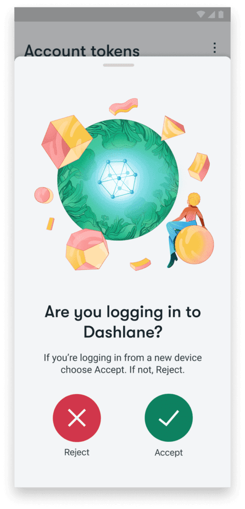 - Sie können sich schneller auf einem neuen Gerät bei Ihrem Dashlane-Konto anmelden. Anstelle der Eingabe eines 6-stelligen Tokens sendet Dashlane eine Push-Benachrichtigung an Ihr Smartphone, über die Sie Ihre Identität bestätigen.