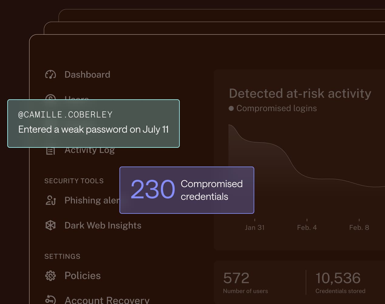 La protection des identifiants est déployée à l'échelle de l'entreprise, vous permettant ainsi d'obtenir une visibilité et une protection complètes pour chaque employé.